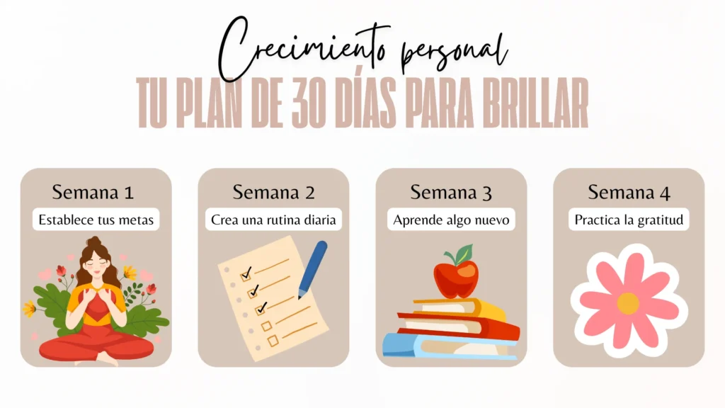 Amiga, hoy quiero compartirte un plan sencillo, amoroso y realista para que impulses tu crecimiento personal en 30 días y veas cómo poco a poco te conviertes en esa mujer segura, enfocada y plena que ya vive dentro de ti.